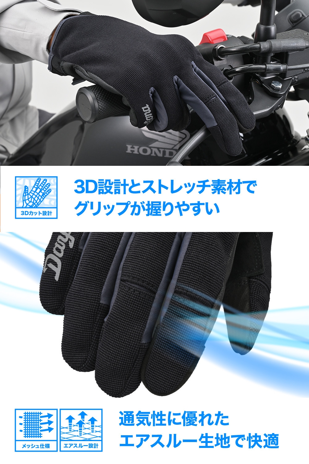 蒸れにくく、長時間のライディングでも快適な設計です。