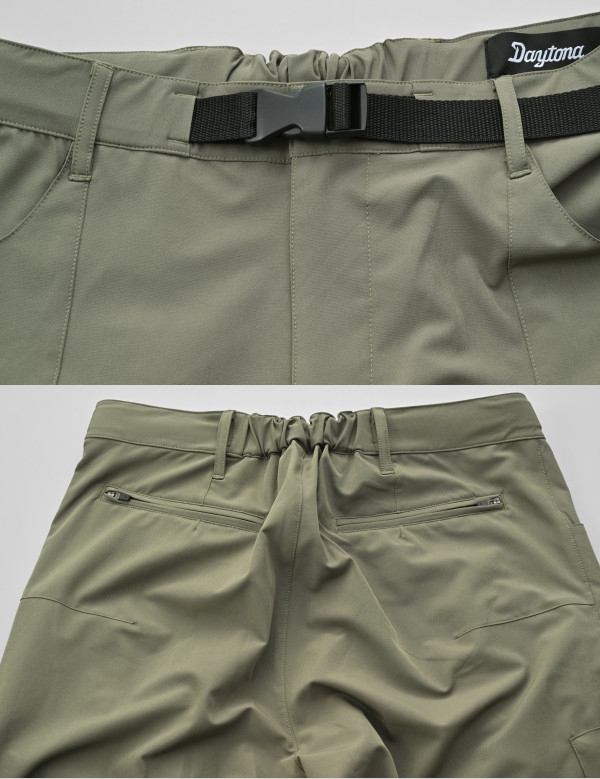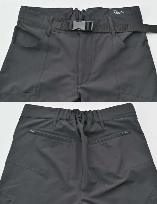 撥水性と速乾性を備えたストレッチ素材のジョガーパンツ。