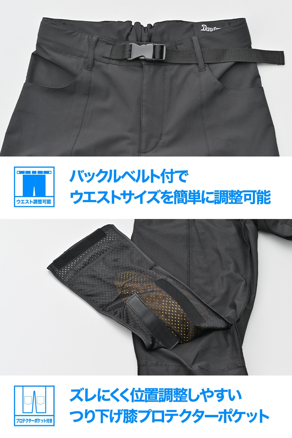 - CE規格レベル1プロテクター標準装備<膝>