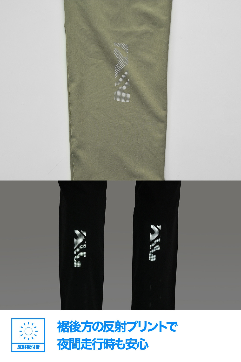 裾後方の反射プリントで視認性を確保、夜間走行も安心です。