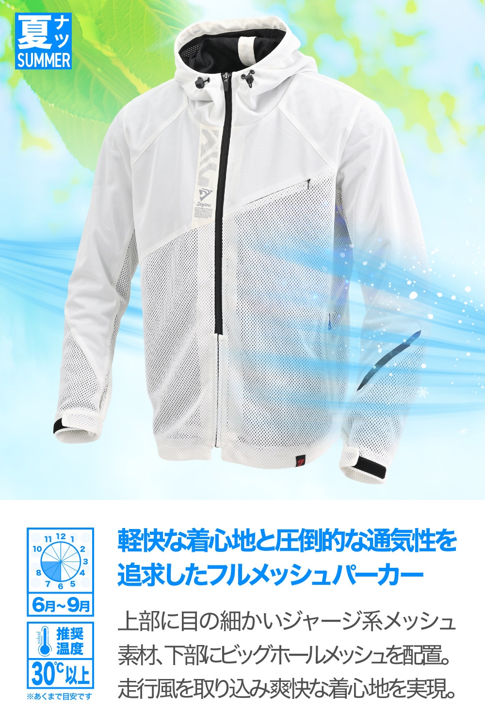 軽快な着心地と圧倒的な通気性を追求したフルメッシュパーカー。