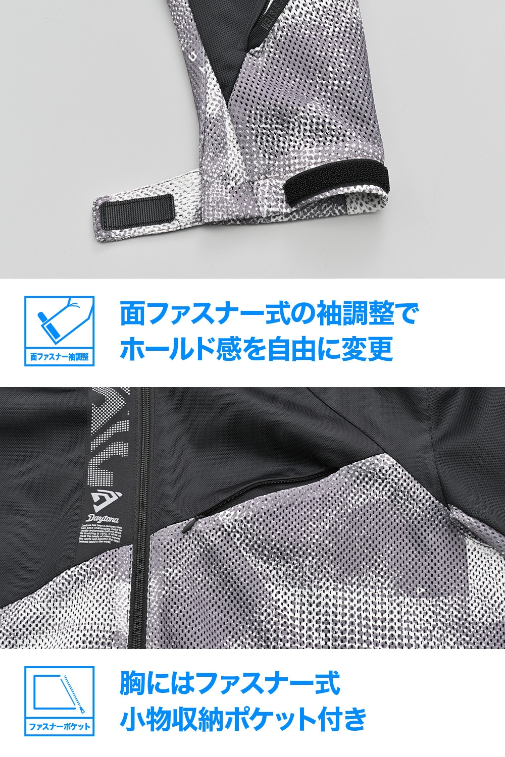 高通気とストレッチ性、デザイン性を兼ね備え、街乗りから夏のロングツーリングまで幅広く対応するメッシュパーカーです。