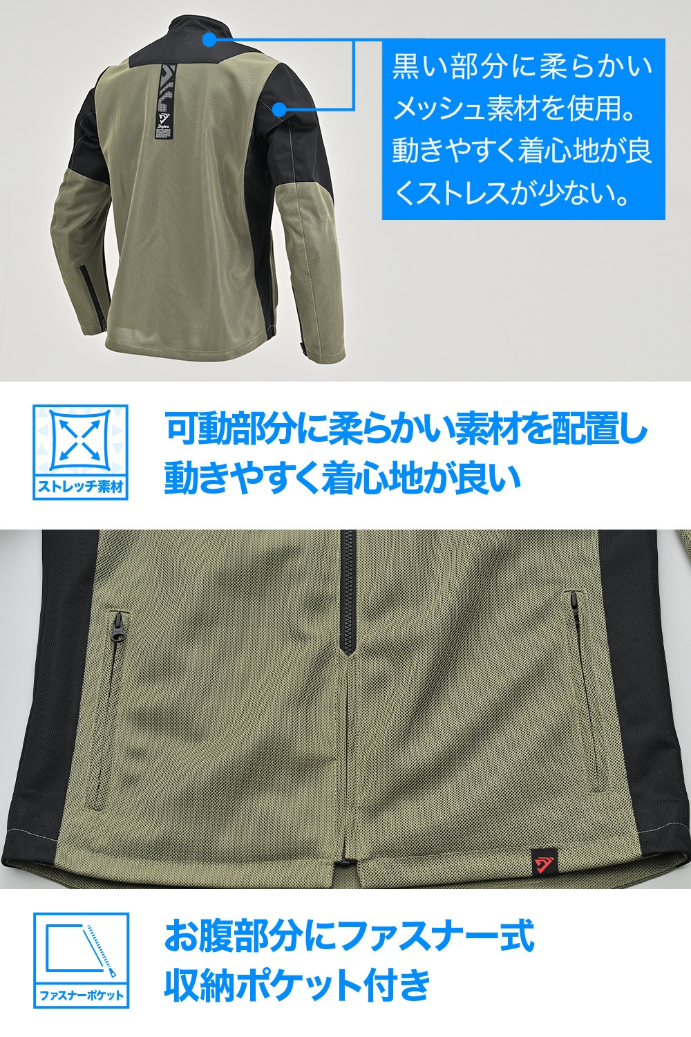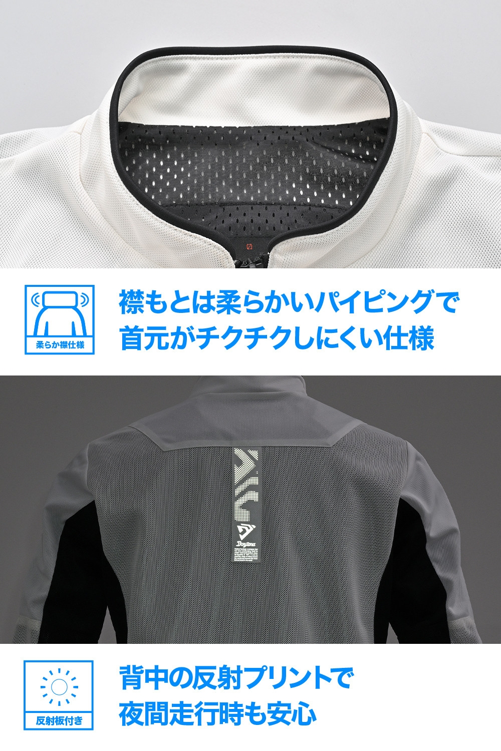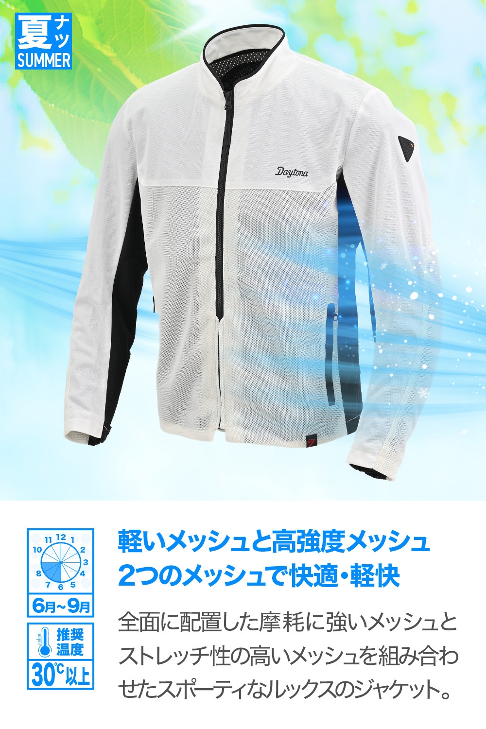 ※こちらの商品は、通気性が高いジャケットとなっており山間部や標高の高い場所では寒く感じる場合があります。ツーリング場所によっては別途インナーをご用意ください。