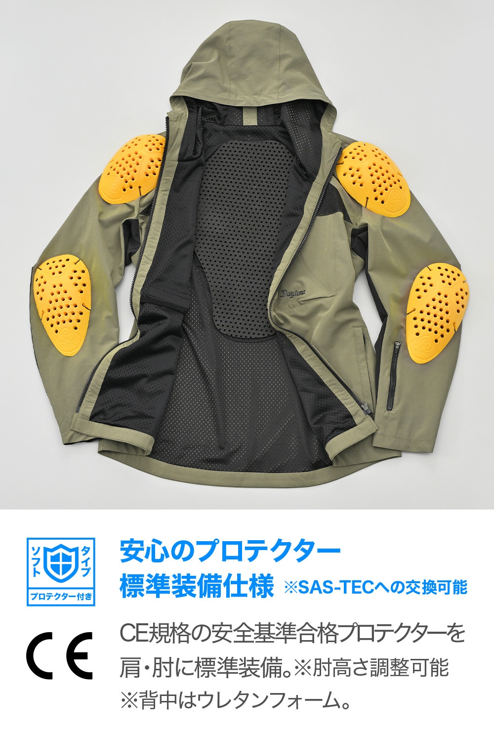 - プロテクター:肩 / 肘(CE規格)、背中(ウレタンフォーム)