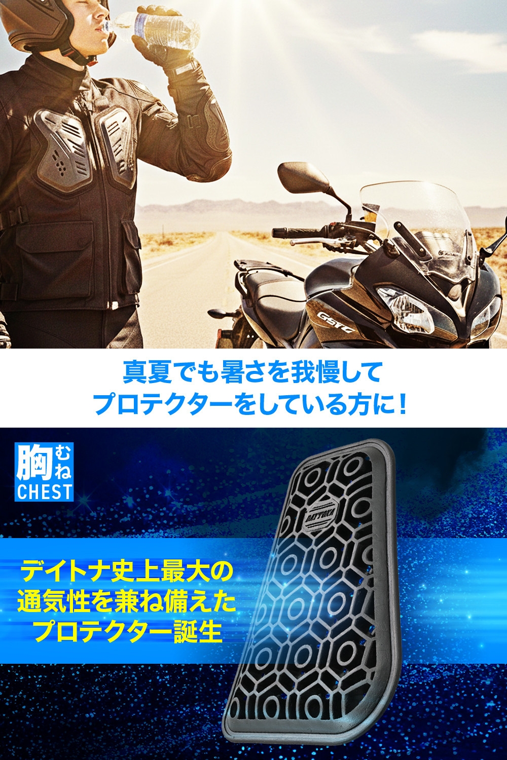夏場の快適性を極めたメッシュプロテクター。