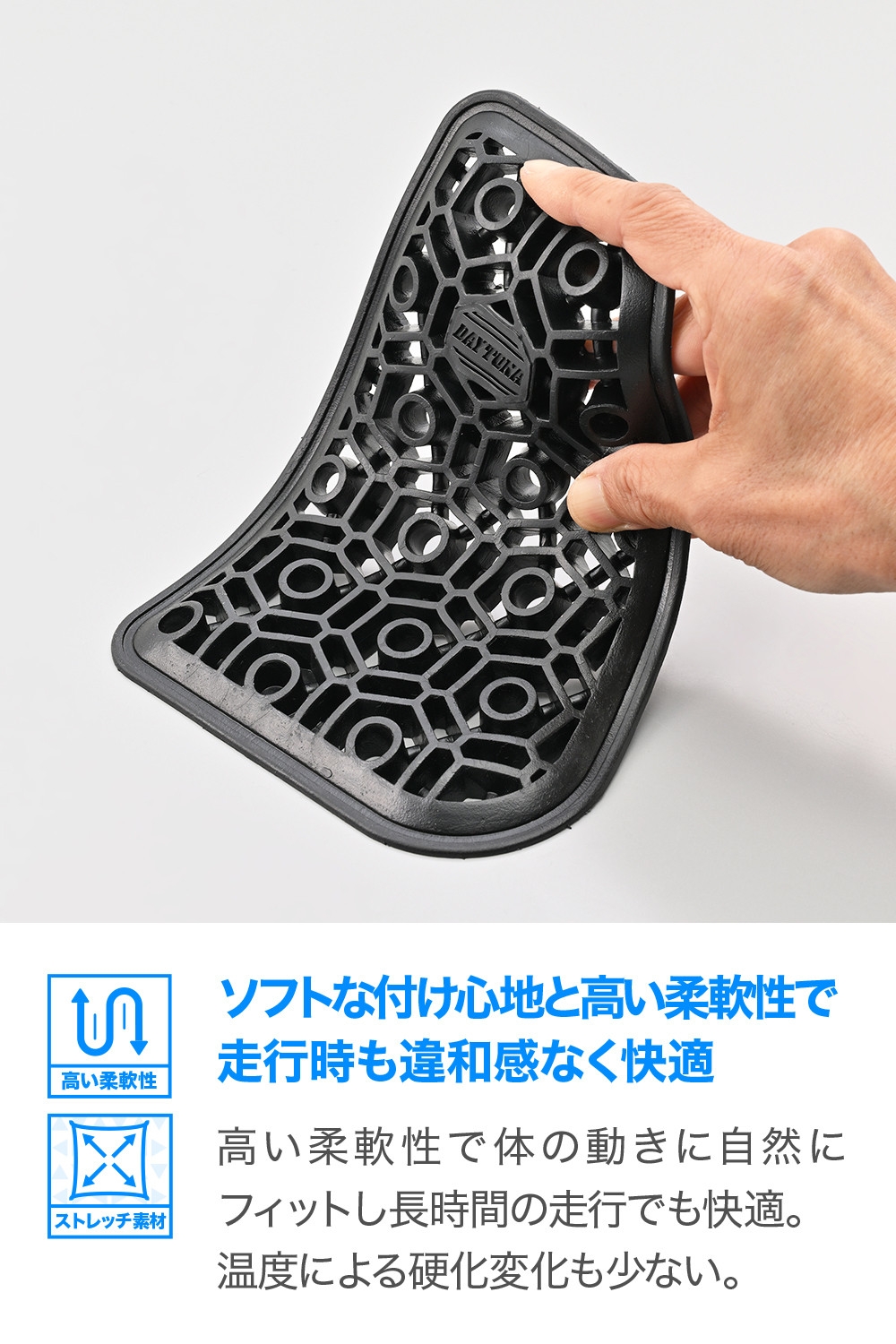 ソフトな着け心地で高い柔軟性で走行時も違和感なく快適です。