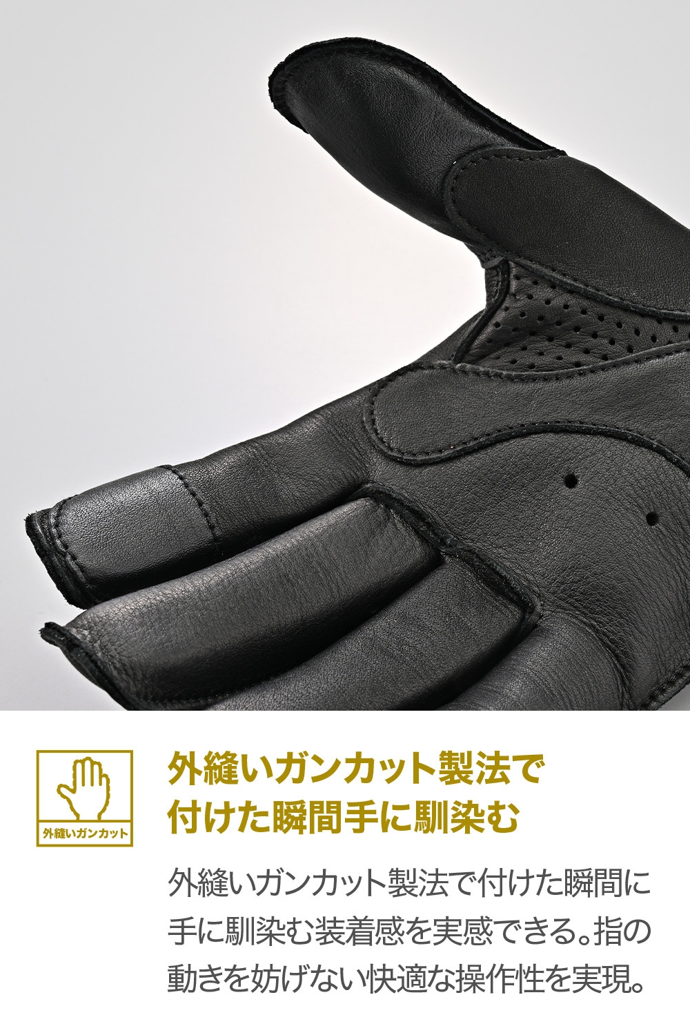 縫製は内縫いのガンカット製法を採用し、指の動きを妨げない快適な操作性を実現。