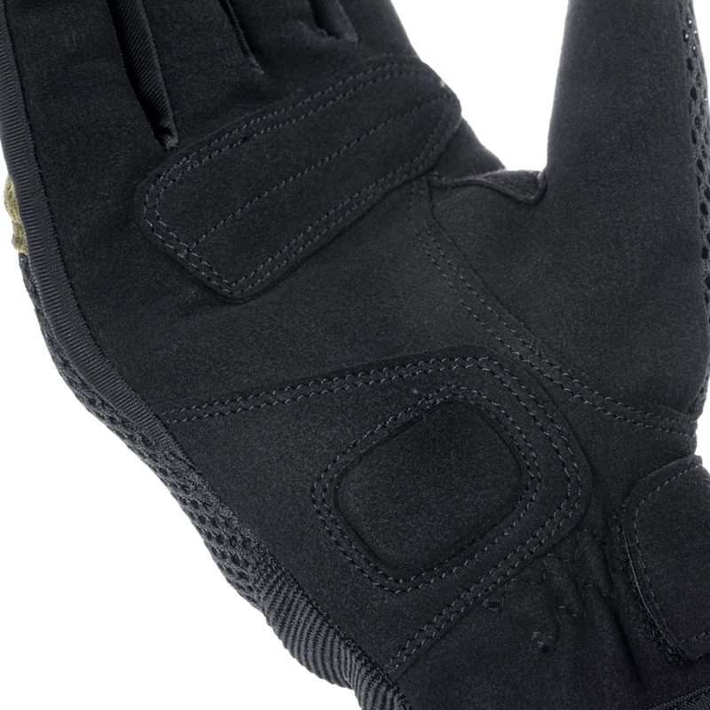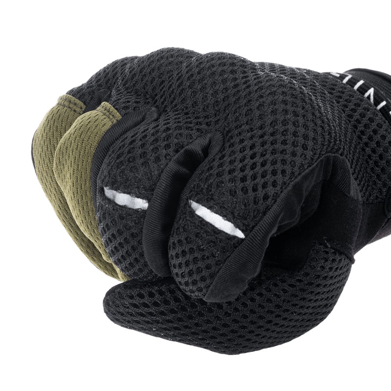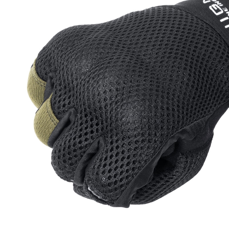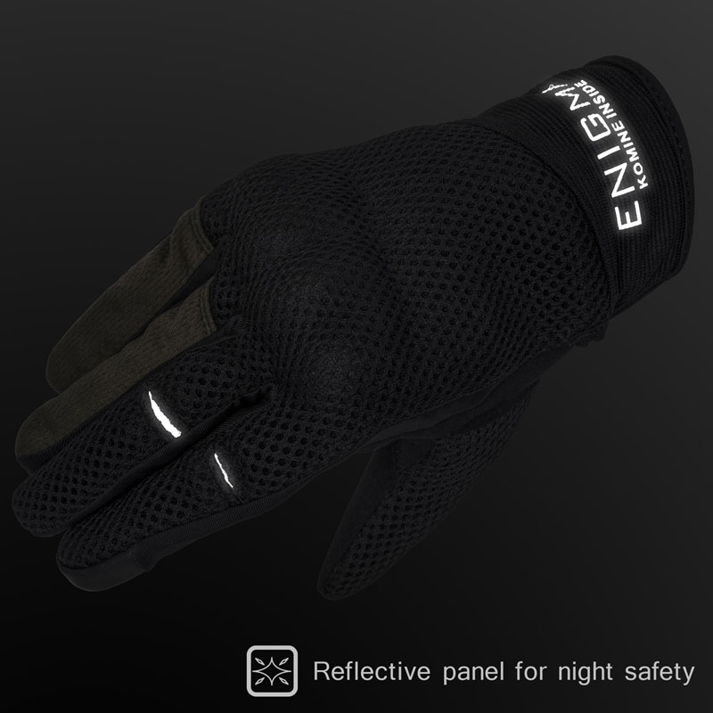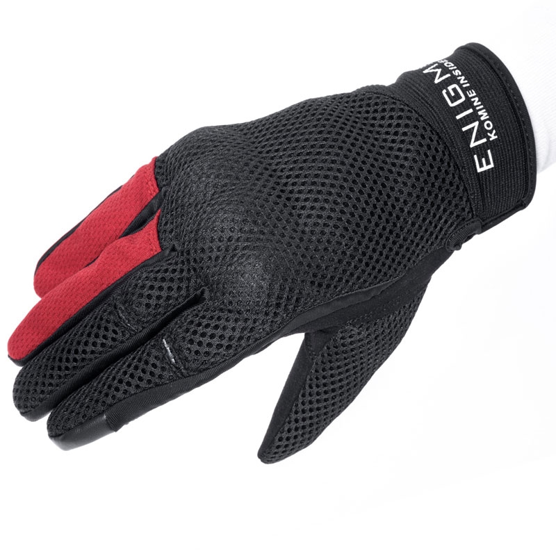 内蔵型ソフトナックルガードを装備した自然なフィット感のメッシュグローブ。