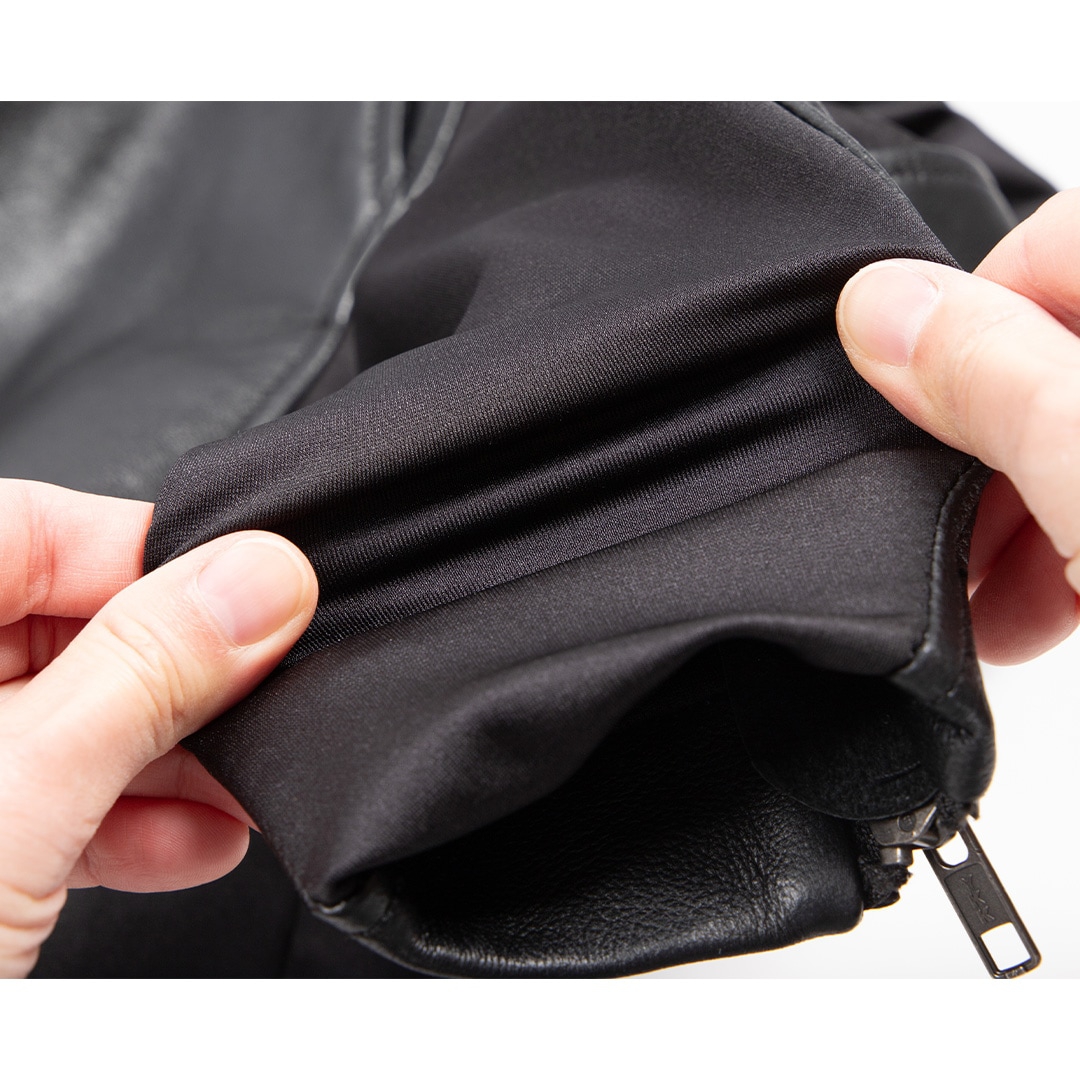軽量かつ柔軟性があり、身体にフィットする羊革を使用。