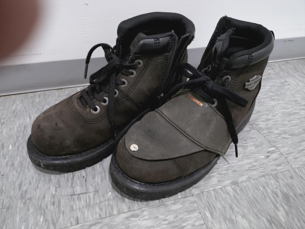 他社のシフトガードと異なりゴムベルトが土踏まずの位置にあり、地面に接地しなくて摩耗が少ないようです。ただ使い込むに従い、先端部が上に反ってシフトペダルの噛み込みが頻繁になりました。見た目が悪いですが、シカゴスクリューで先端を固定しました。両面テープの方法もありますが、バイク専用の靴にしていますので取り外しは度外視です。メーカーさんで何か対策していただけないかな。