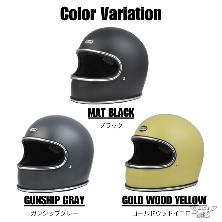ヘルメットカラーは、ジェットヘルメット“Lot- 500”でも人気のマットブラック、ガンシップグレー、ゴールドウッドイエローの3色。