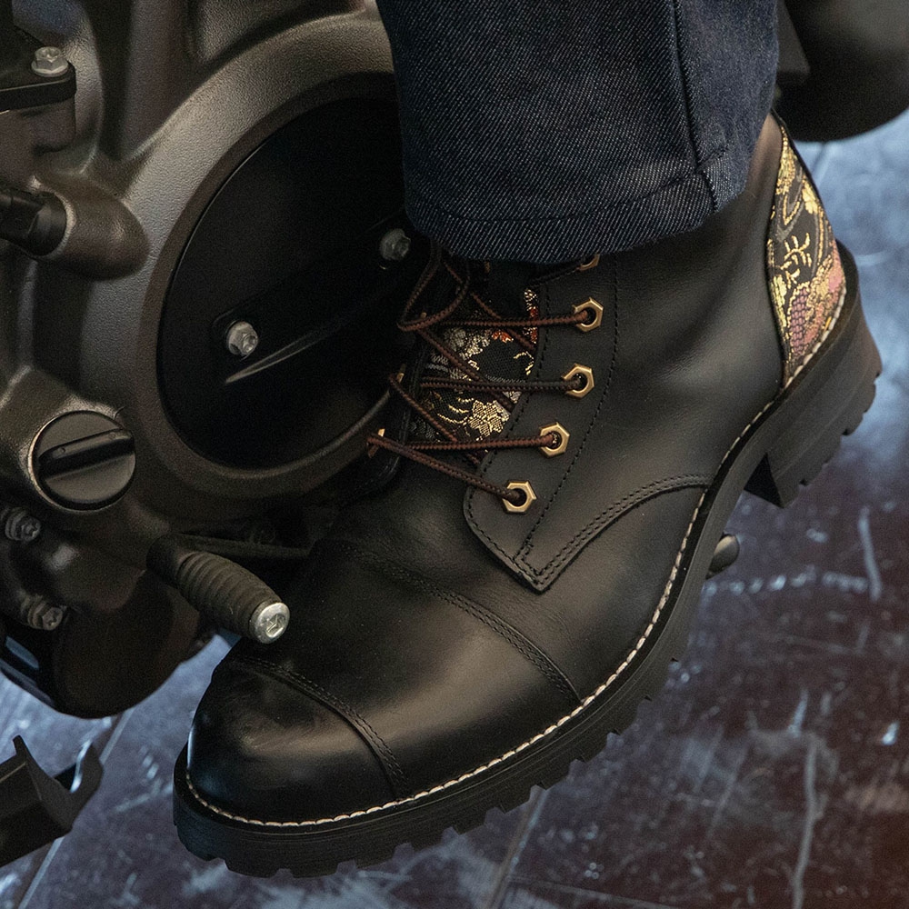 左右対称のシフトガードがデザインに馴染み、ツーリングからタウンユースとシーンを選ばず使用できる。