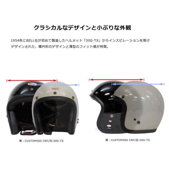 1954年にベルが初めて製造したヘルメットからインスピレーションを得たCustom500は、楕円形のデザインと薄型のフィット感で新たに改良され、 昔ながらのスタイルを保ちながら、より小型な外観を実現しています。