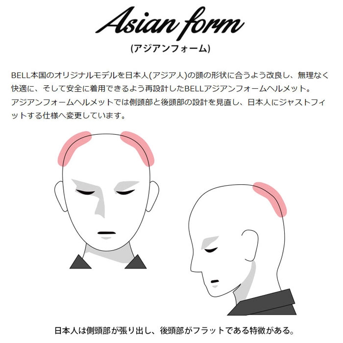 BELL本国のオリジナルモデルを日本人(アジア人)の頭の形状に合うよう改良し、無理なく快適に、そして安全に着用できるよう再設計しております。