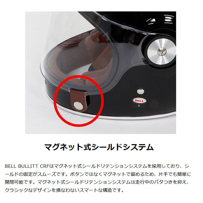 マグネット式シールドリテンションシステムは走行中のバタつきを抑え、クラシックなデザインを損なわないスマートな構造です。