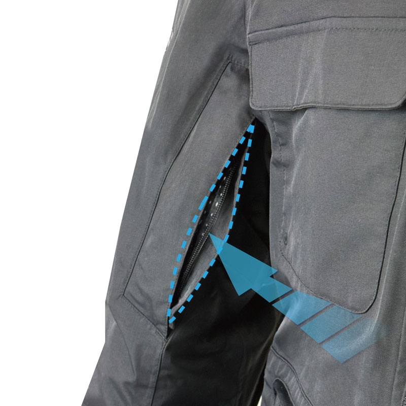 前面4つポケット+腹部ZIPポケット2カ所、背面大型ポケットなど収納に困らない多彩なポケットを持ち、ショートからロングツーリングまで行動的なツーリストを強力にサポート。