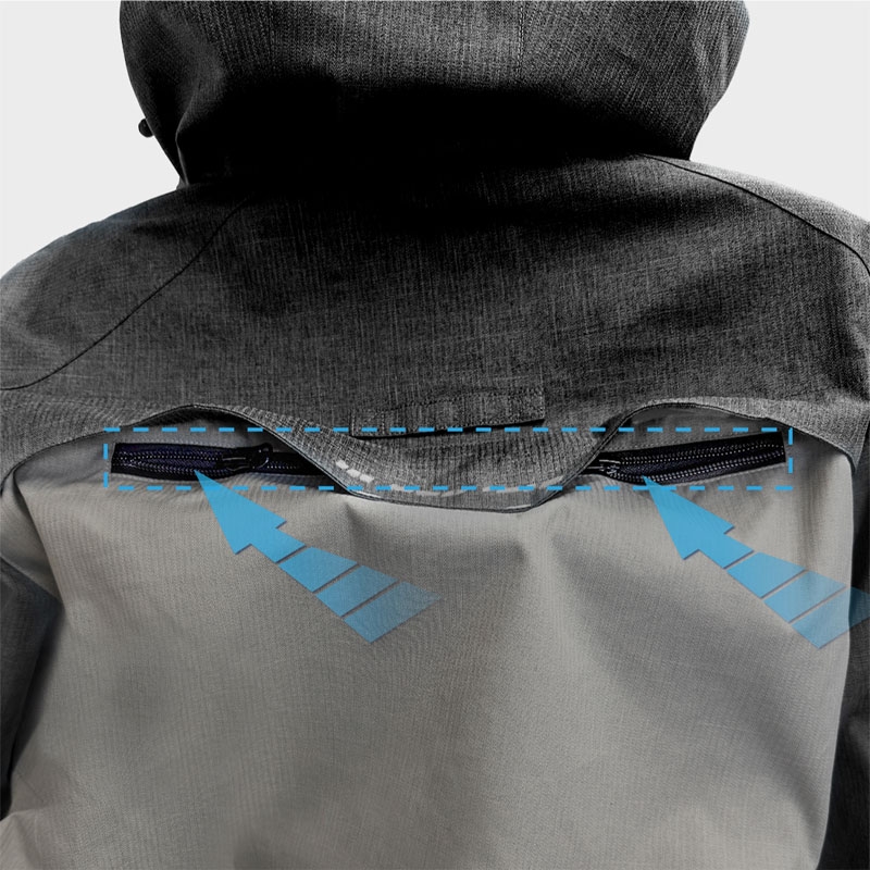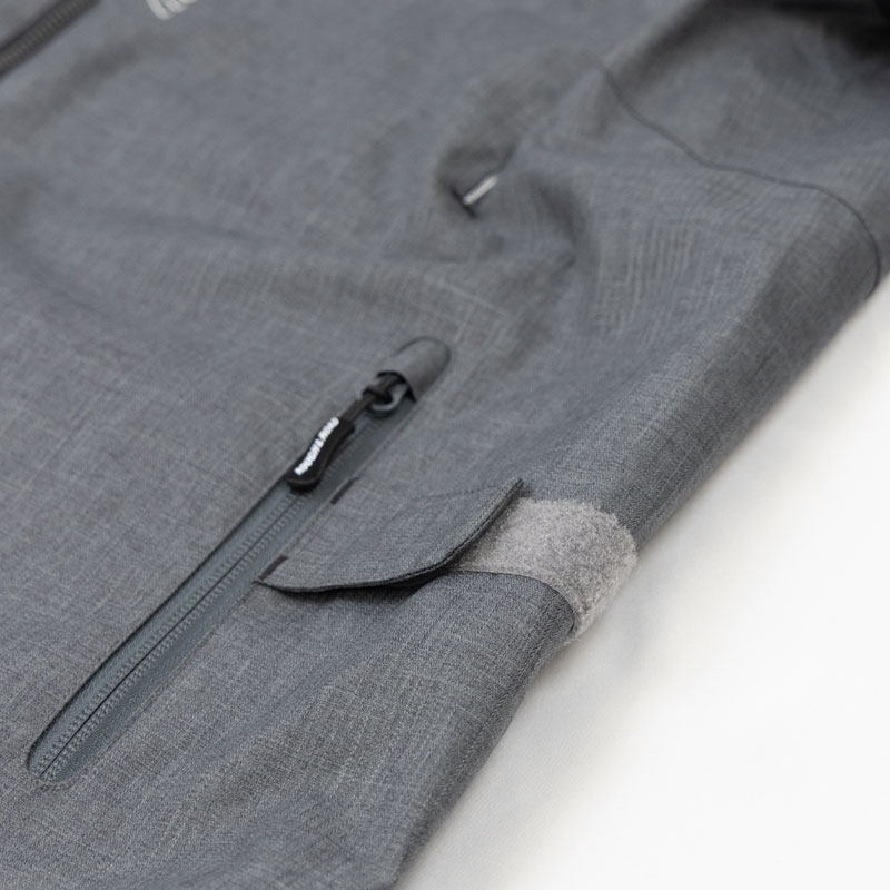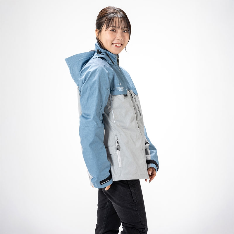 表生地は防風性と高い撥水性のある素材。湿気を放出する透湿性はウェア内をドライに保ち快適です。