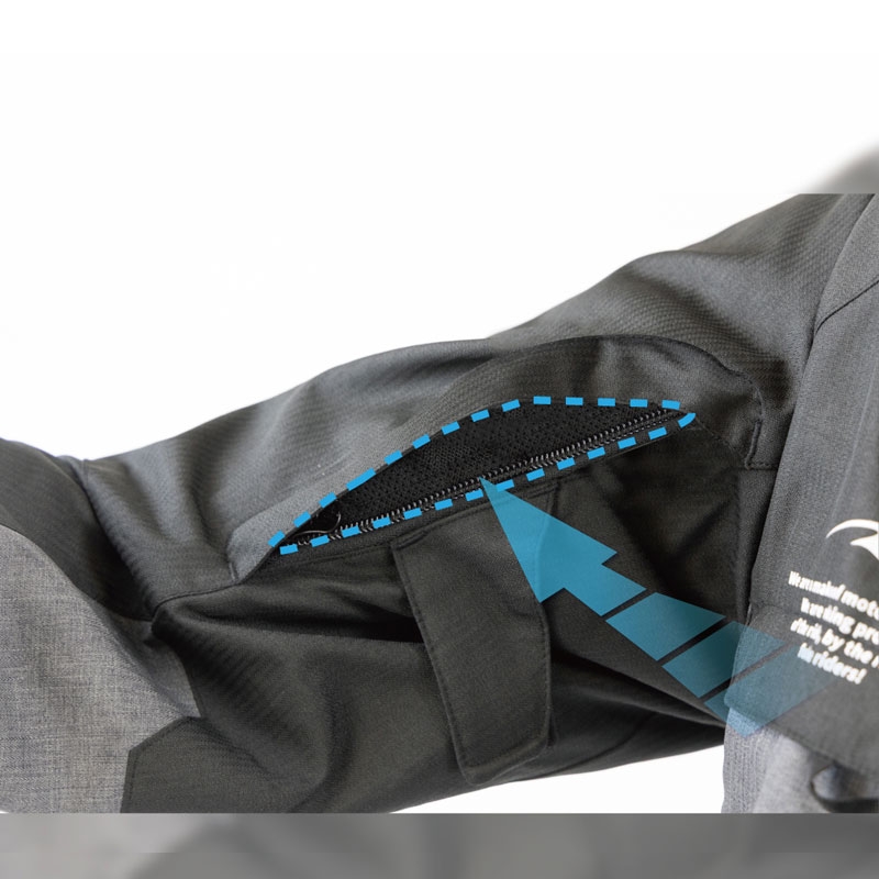 季節気温に合わせてインナージャケット(別売オプション)が装着可能、また酷暑の夏もフロントVベント、袖ベント、背中ベントと強力なベンチレーション装備で積極的に走行風を取り入れることができ、涼しく快適なジャケットです。