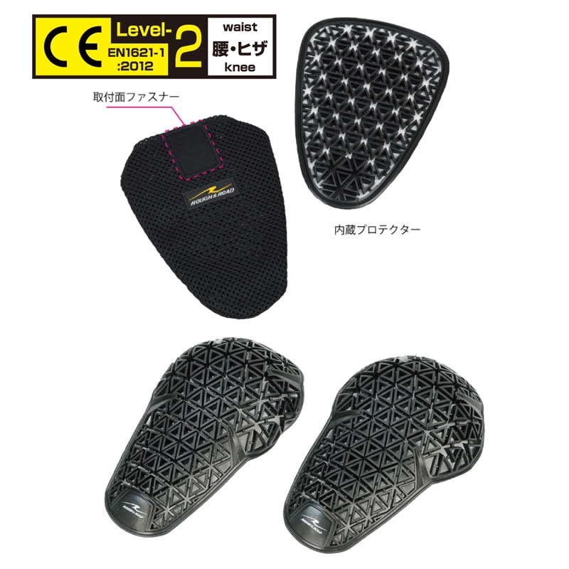 関節の動きにストレスなく追従するデルタ構造の集合体で設計されたCEレベル2認証ニープロテクターは、柔軟性だけでなく通気性にも優れ、メッシュパンツとの相性は抜群。