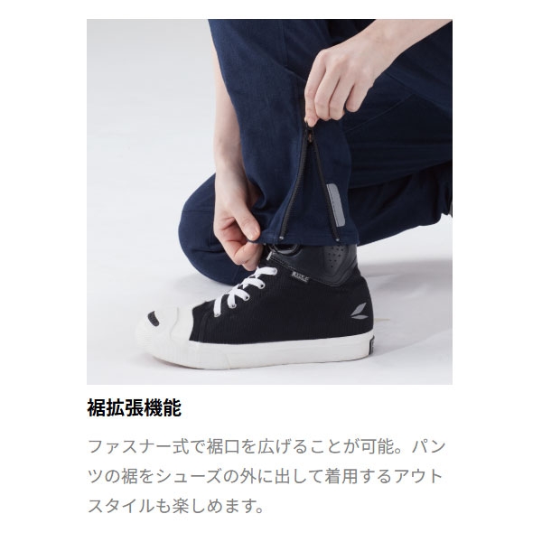 軽量かつ快適な履き心地が特徴です。裾は、ファスナーで拡張が可能。シューズに合わせ調整いただけます。
