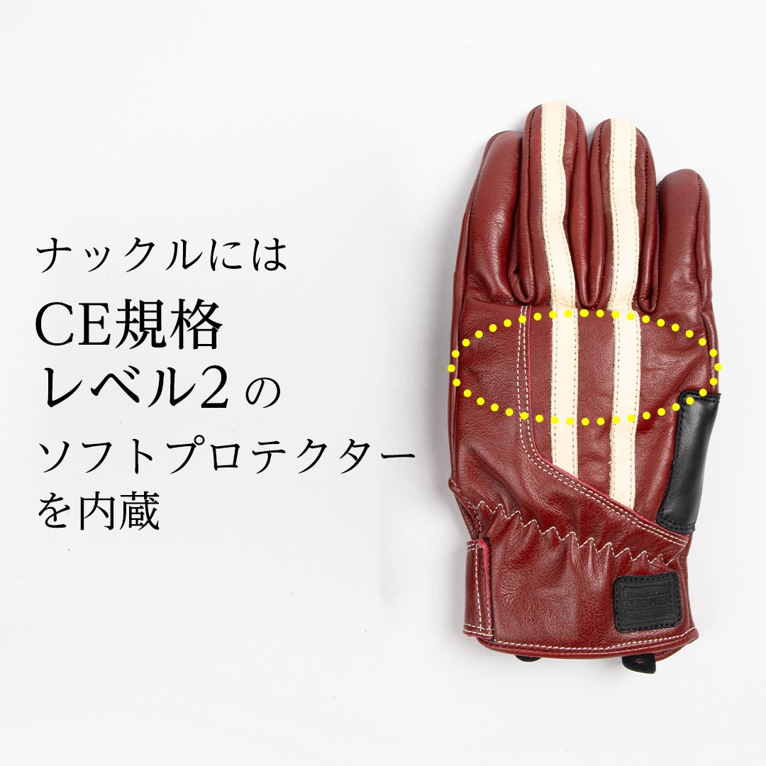 内蔵のナックルプロテクターにはCE規格 レベル2 認証のプロテクターを使用しており、安全性も高い。
