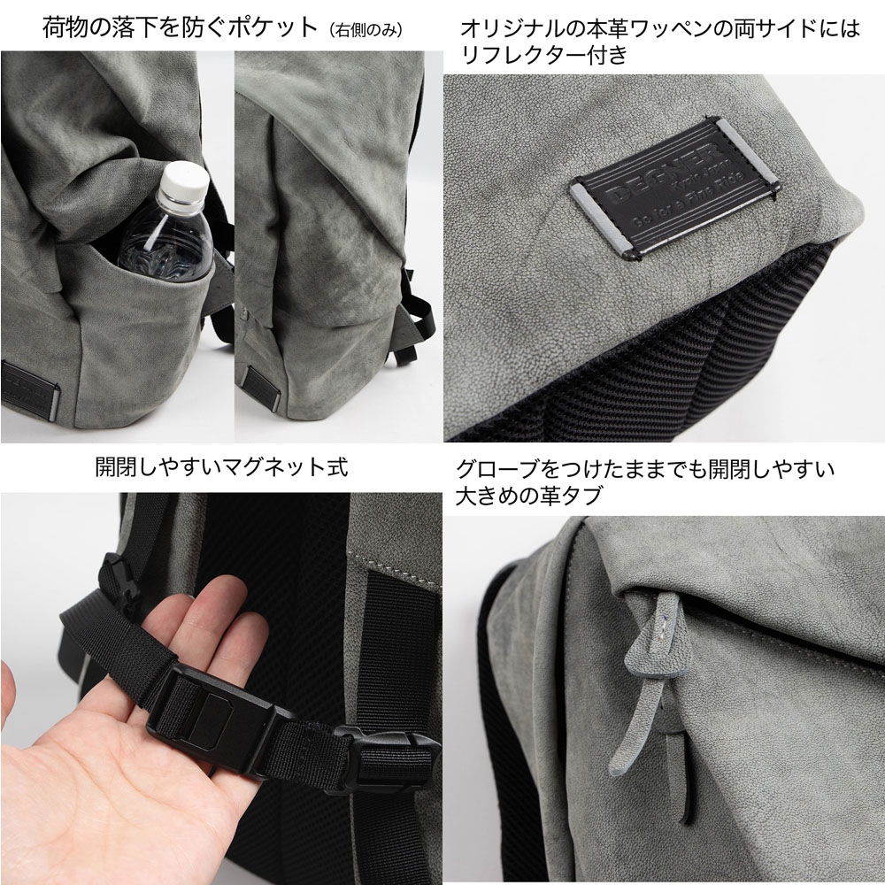ライダー向けに設計されたレザーバックパック