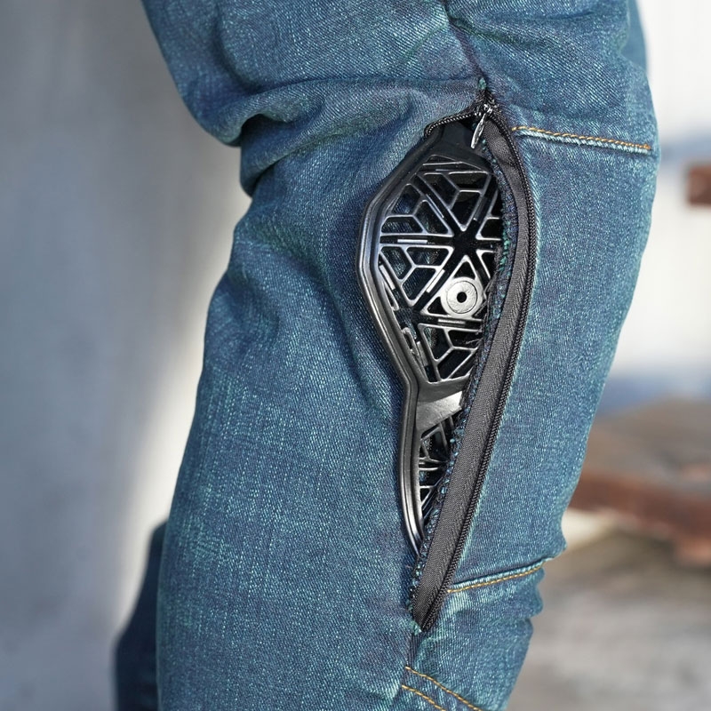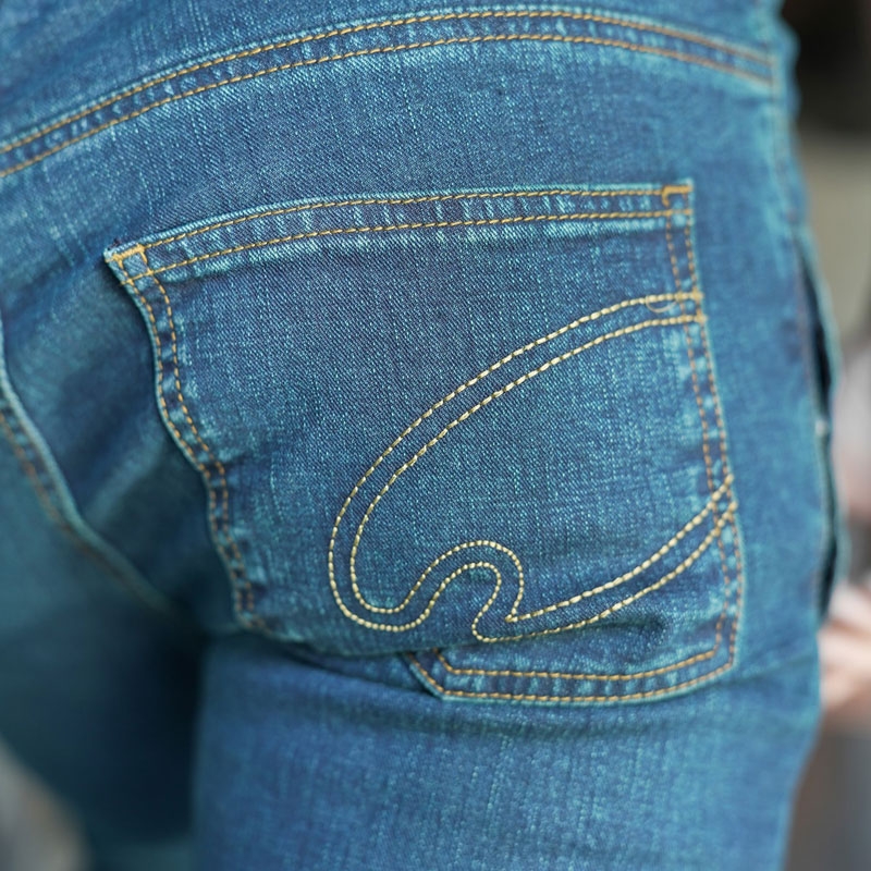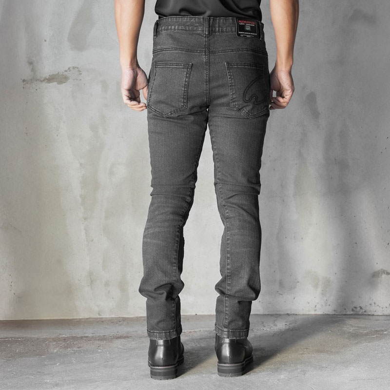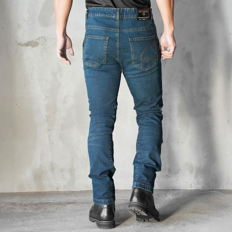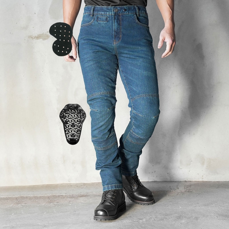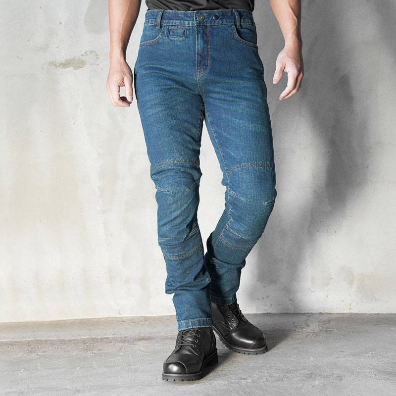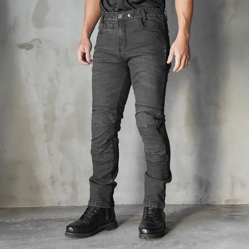 どんなスタイルにも合わせやすいシンプルなデザインのライディングジーンズ。