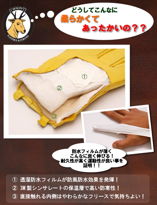 また、ウォッシャブルスキン(洗える革)を使用しているので水濡れに強く、天候が変わりやすいシーズンに嬉しいグローブです。